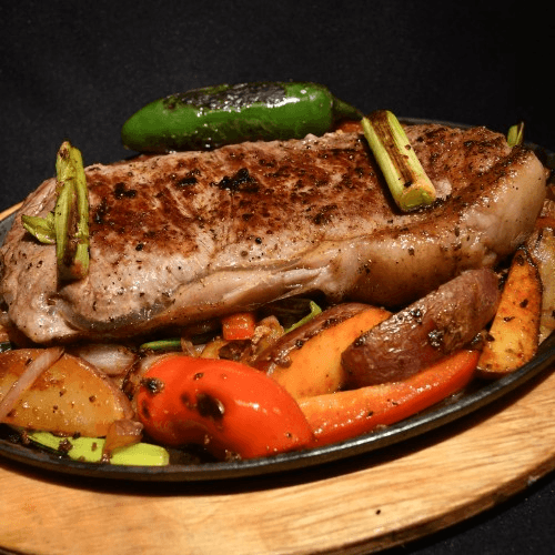 12 oz New York strip, served with grilled red potatoes, onions and serrano peppers. Sautéed with chorizo. Served with your choice of rice, beans or guacamole salad and tortillas